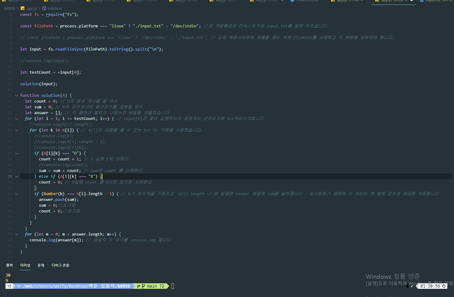 count = 0; // X일때 count 를 0으로 초기화 시켜준다