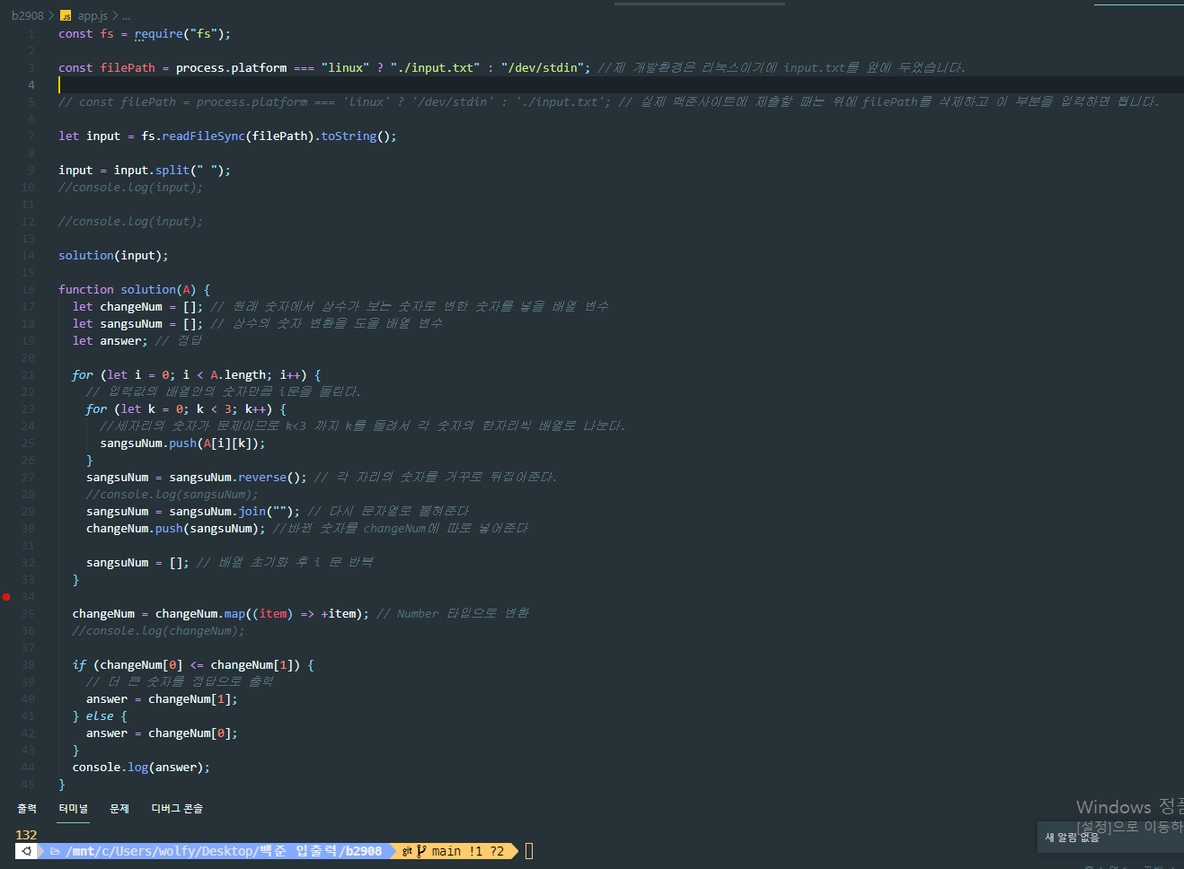 const filePath = process.platform === "linux" ? "./input.txt" : "/dev/stdin"; //제 개발환경은 리눅스이기에 input.txt를 앞에 두었습니다.