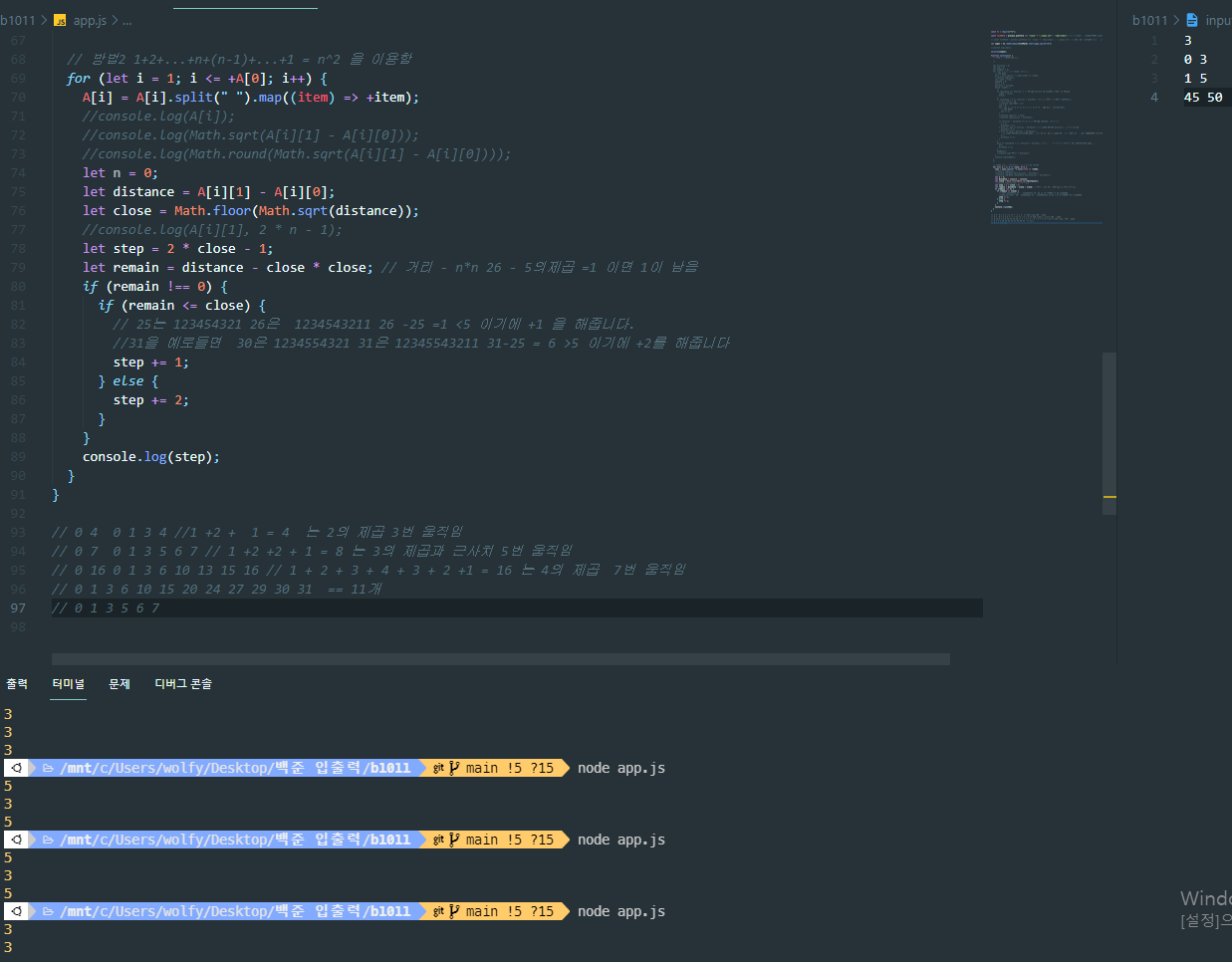 백준 nodejs 1011번: Fly me to the Alpha Centauri