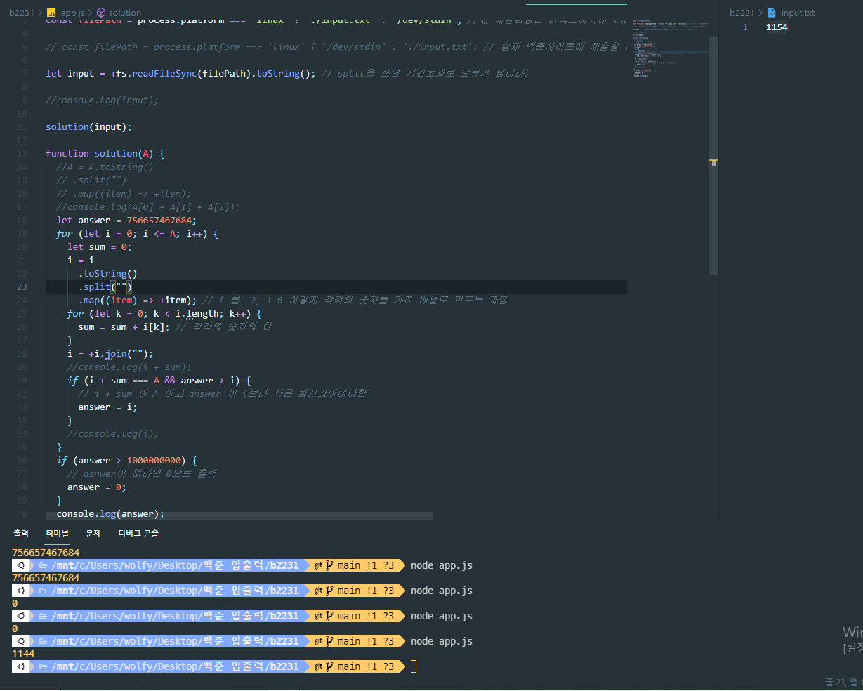 let input = +fs.readFileSync(filePath).toString(); // split을 쓰면 시간초과로 오류가 납니다!