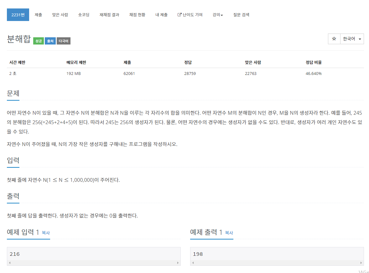 // i + sum 이 A 이고 answer 이 i보다 작은 최저값이여야함