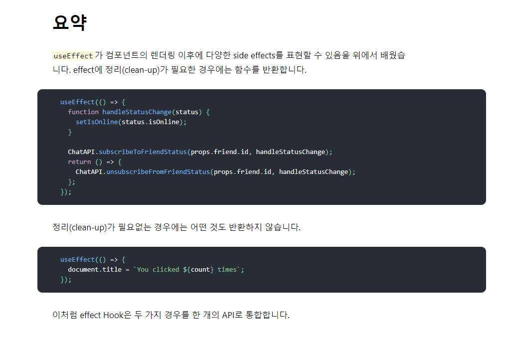 effect 안에 return 을 사용하는 것을 cleanup 이라고 한다.