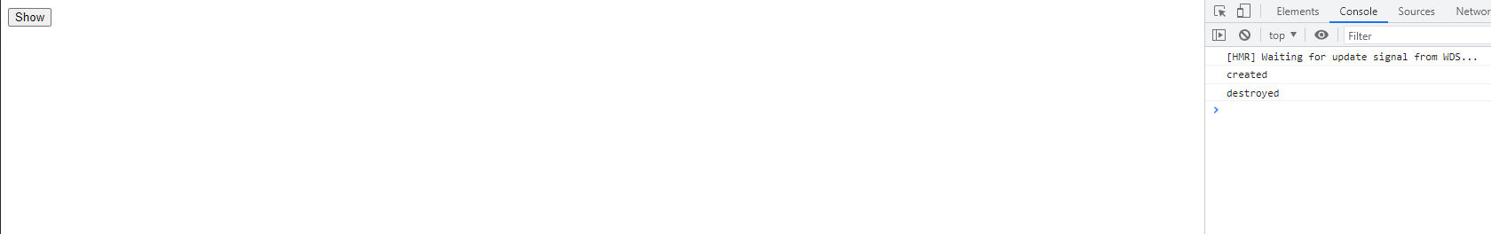 return () => console.log("destroyed"); // effect가 없어질 때 호출
