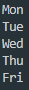 for 변수 in 사용할변수 를 사용하면 1개씩 출력됨