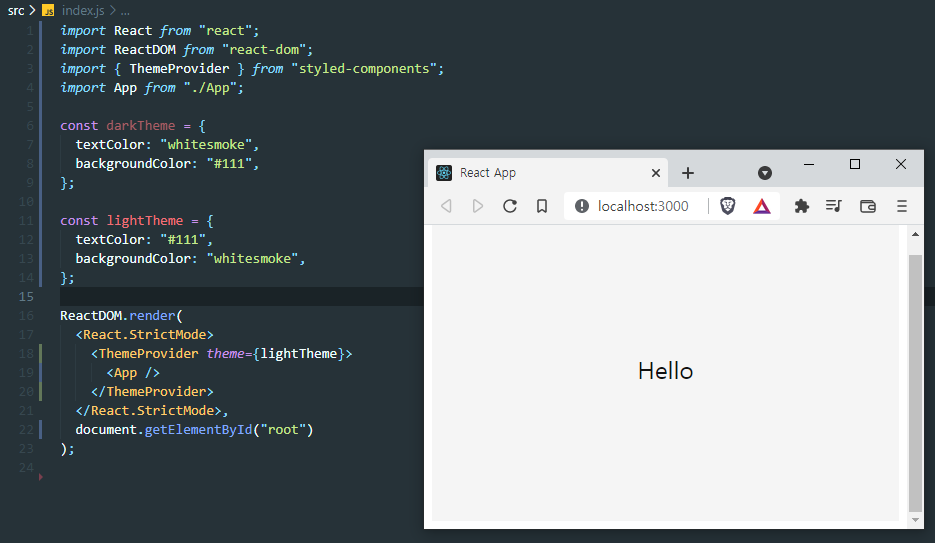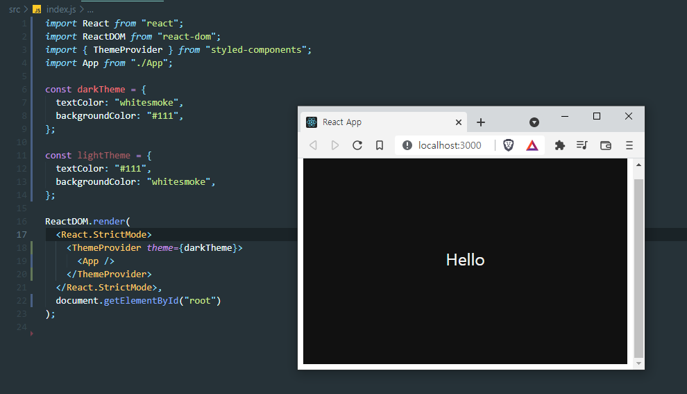 1.App을 ThemeProVider로 감싸줍니다.