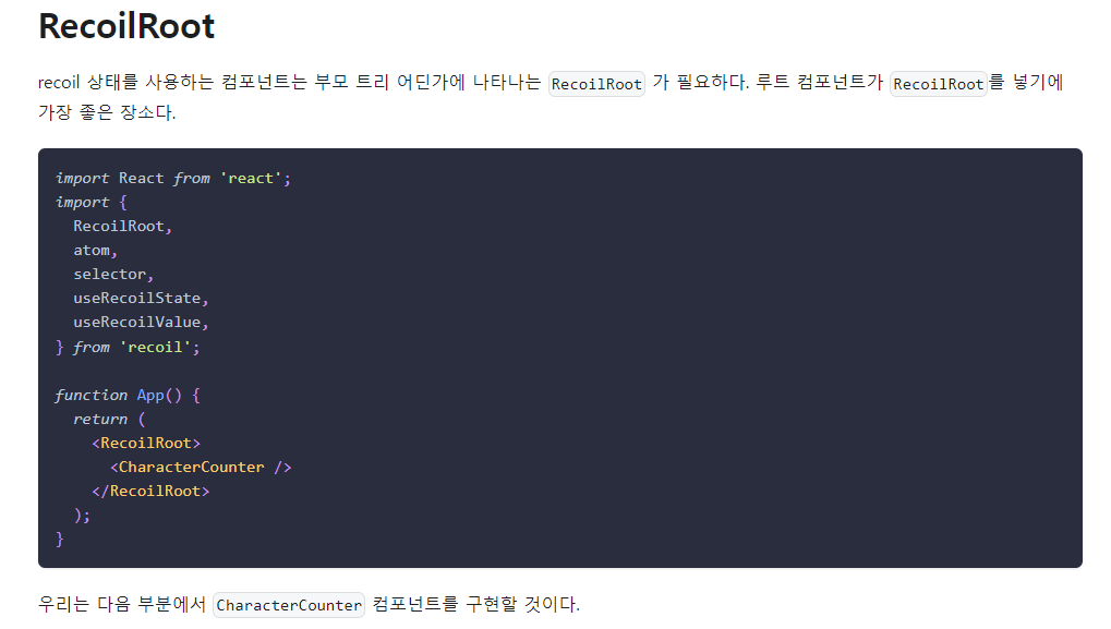 https://recoiljs.org/ko/docs/introduction/getting-started