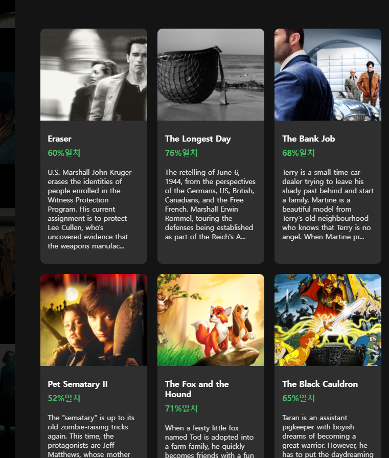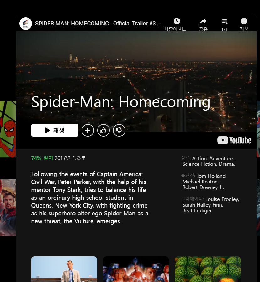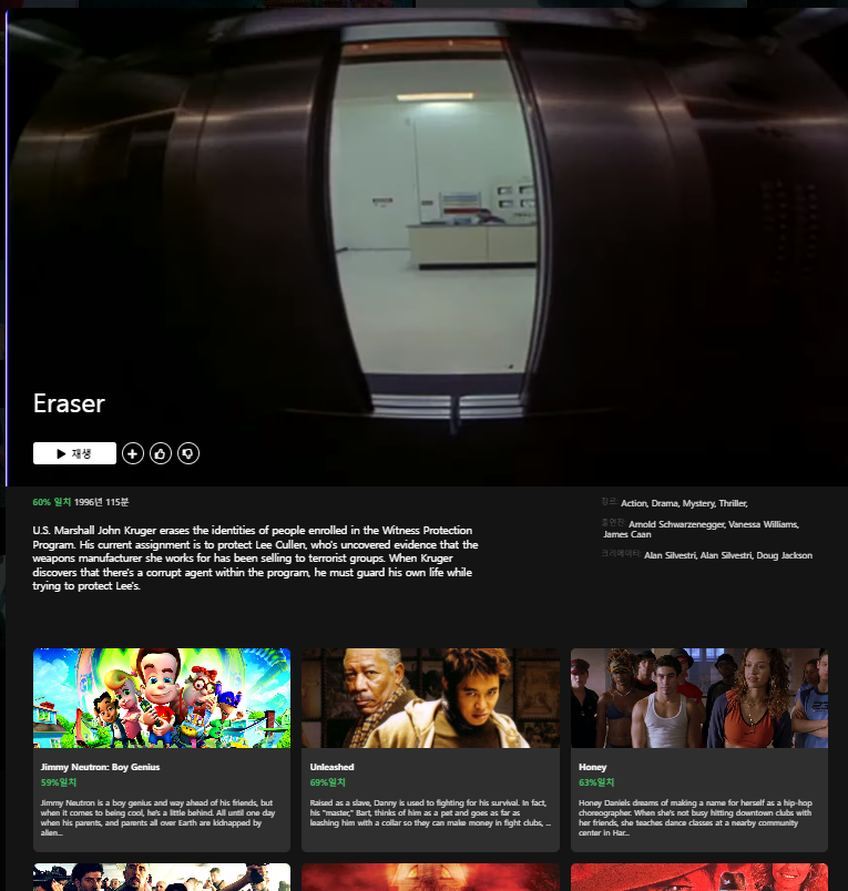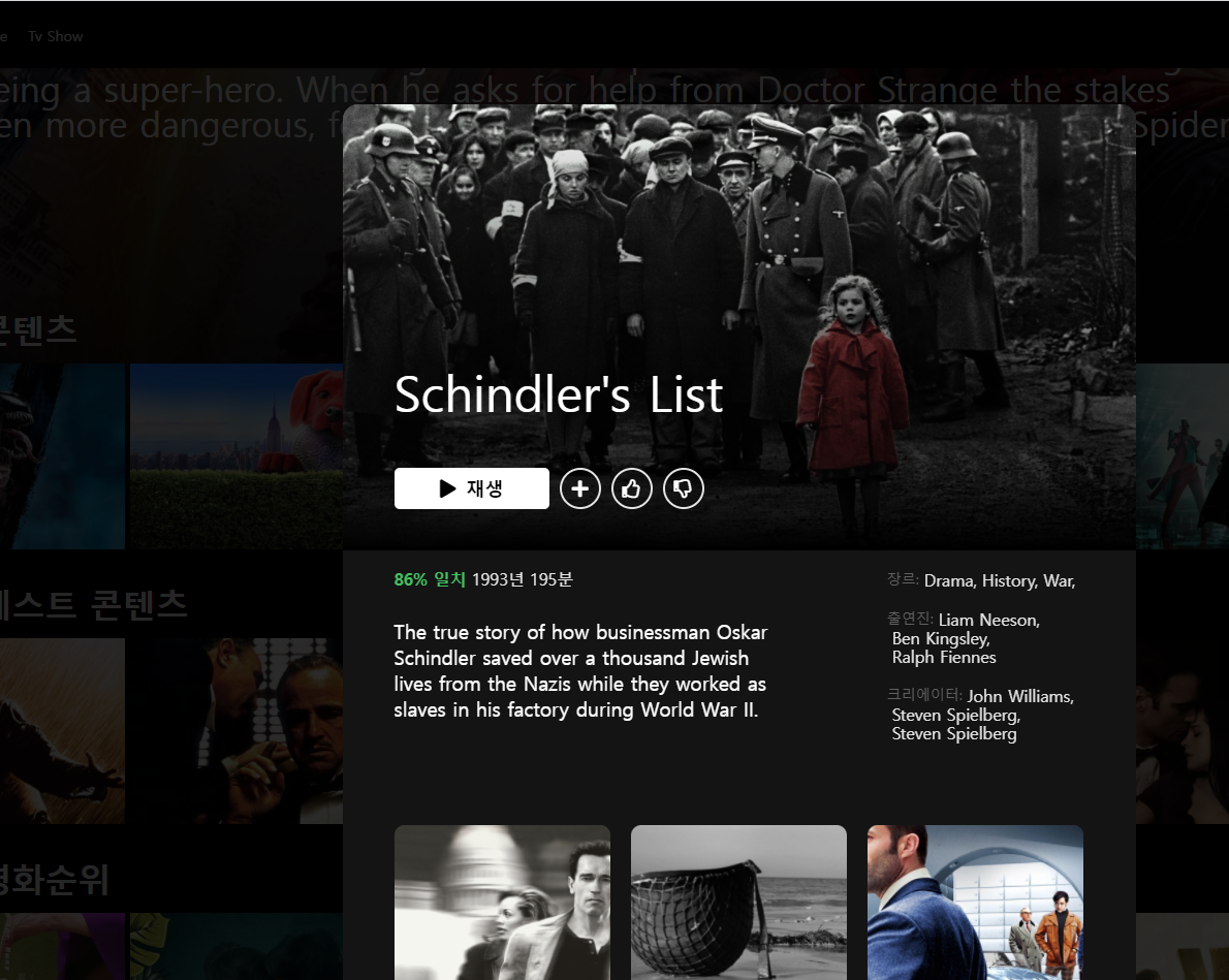 영화를 눌렀을때 DETAIL 한 정보를 보여주는 컴포넌트였엇고 다시 밑에 비슷한 콘텐츠들을 보여주는 형식이었습니다.