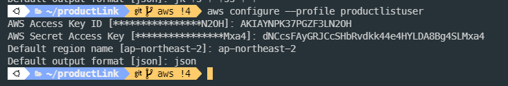 - Default region name : ap-northeast-2