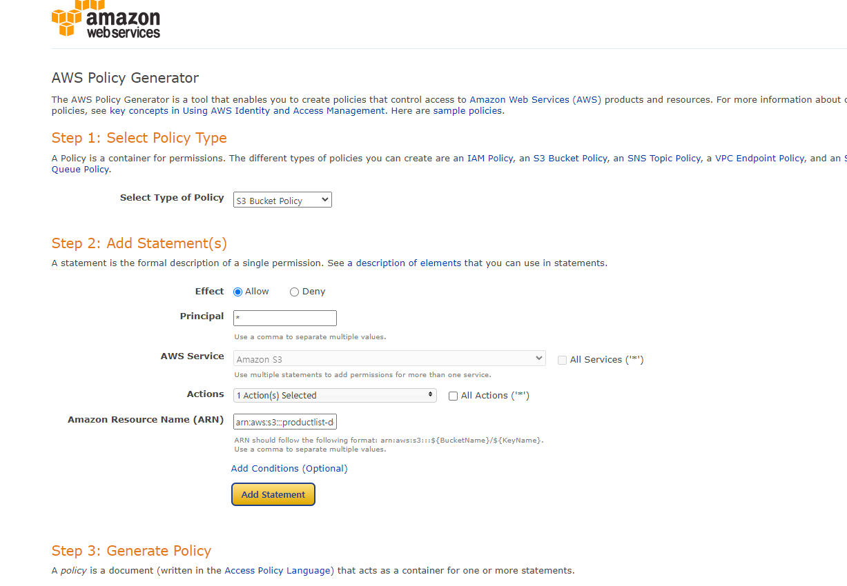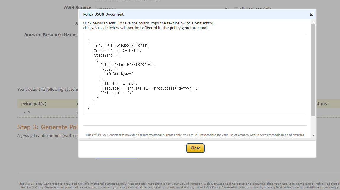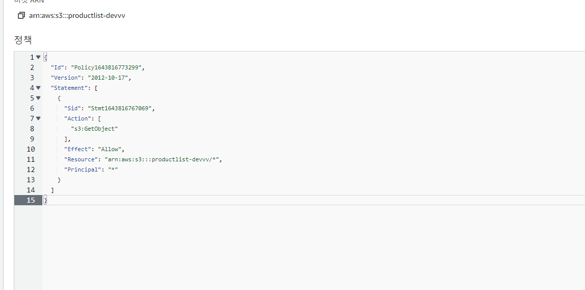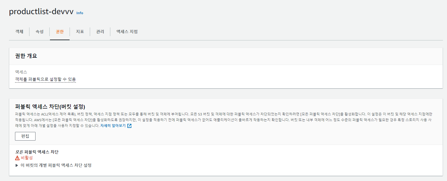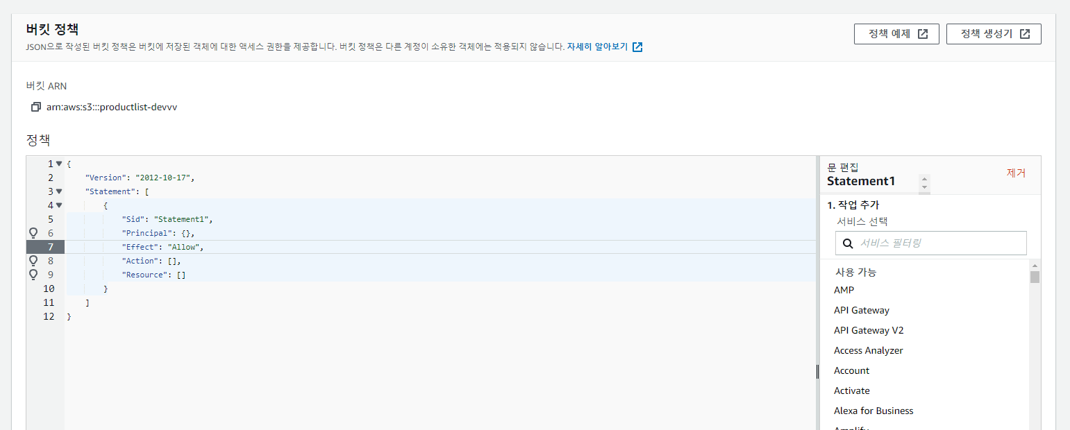 2-3. 권한 – 버킷 정책 편집