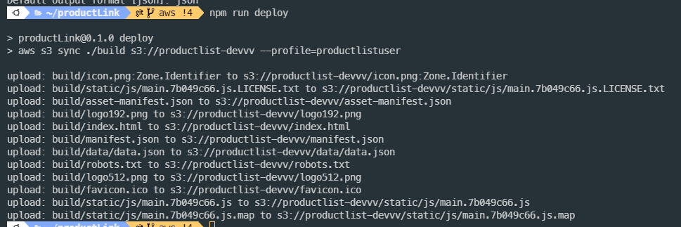 aws s3 sync ./build s3://productlist-devvv --profile=productlistuser