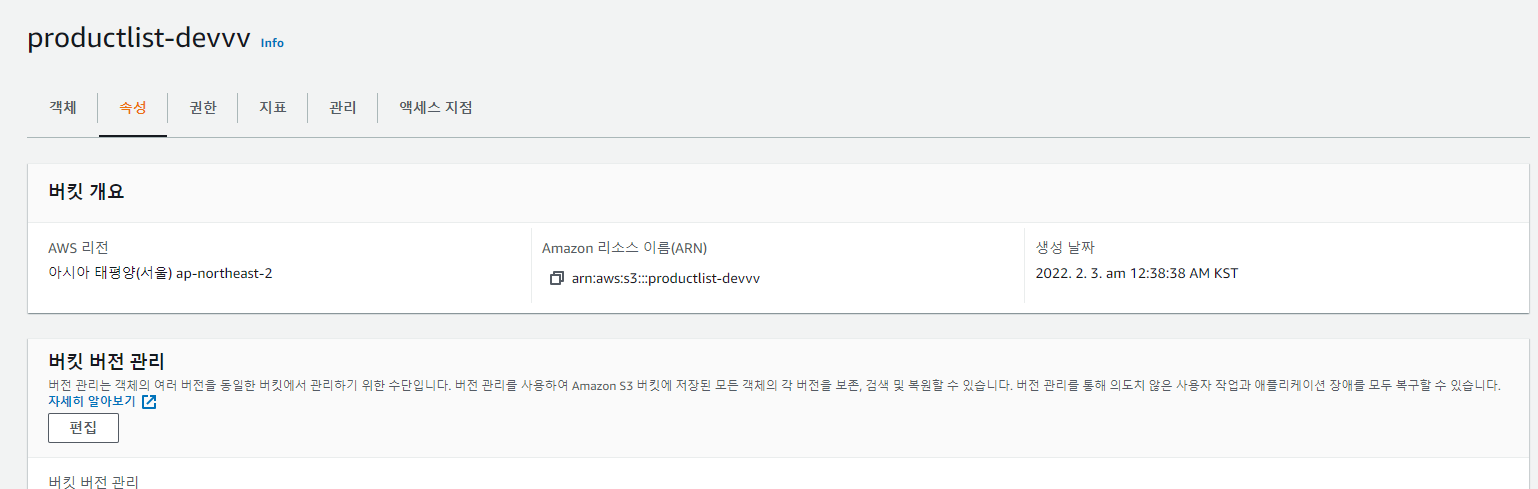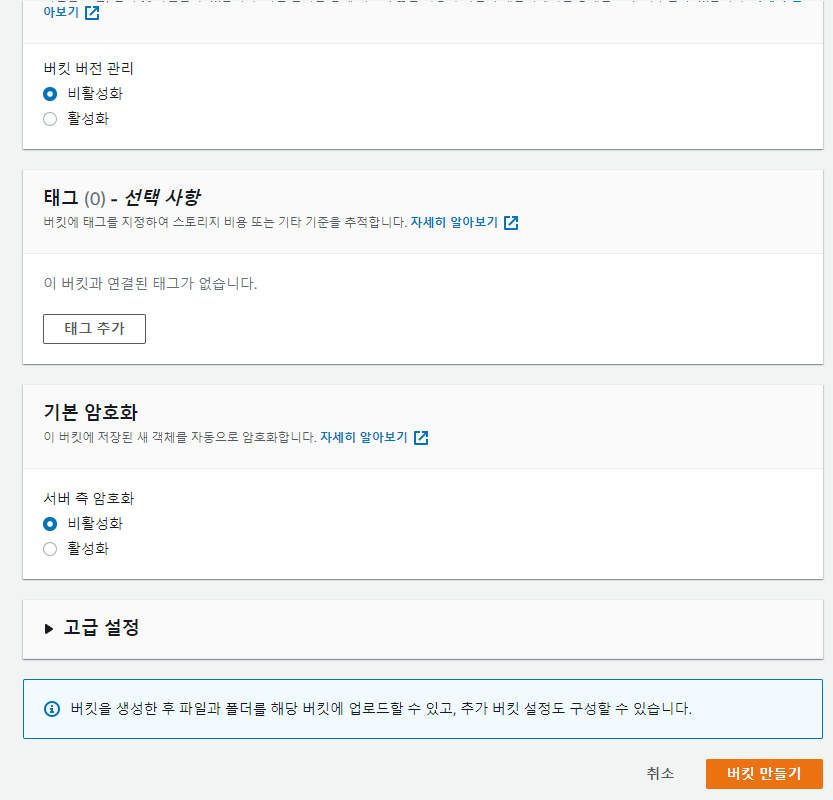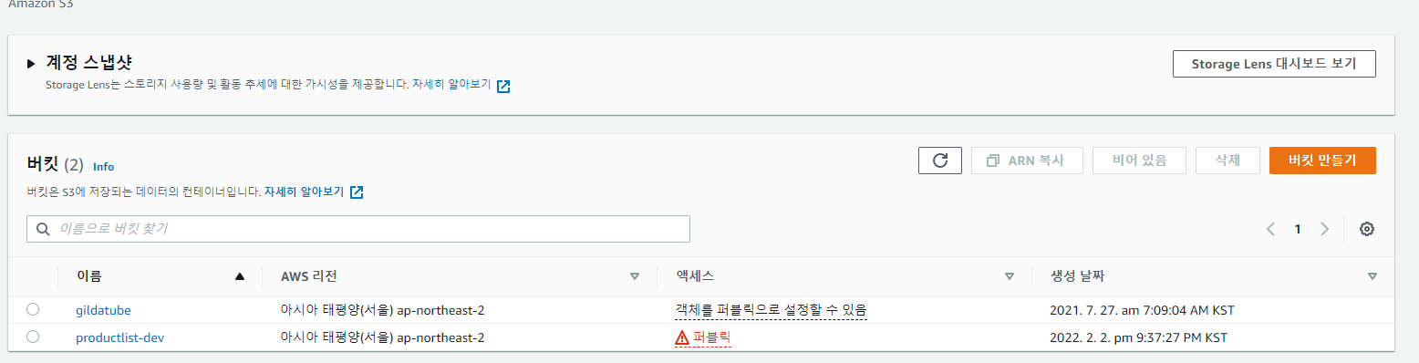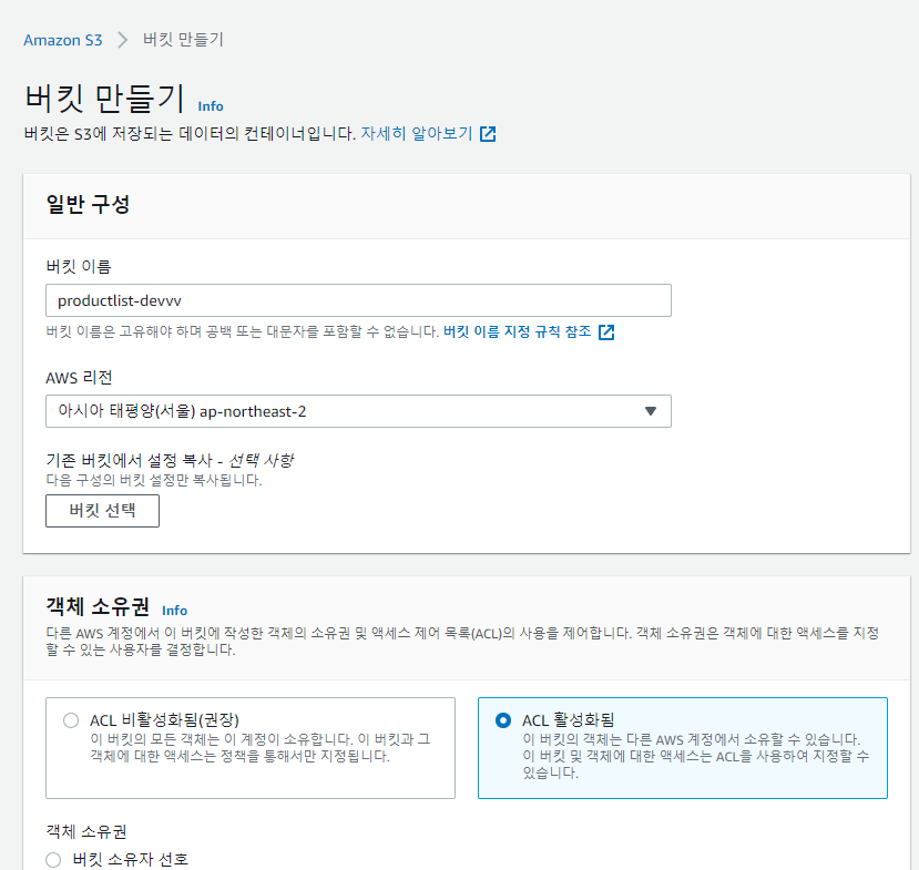 - S3 버킷 만들기