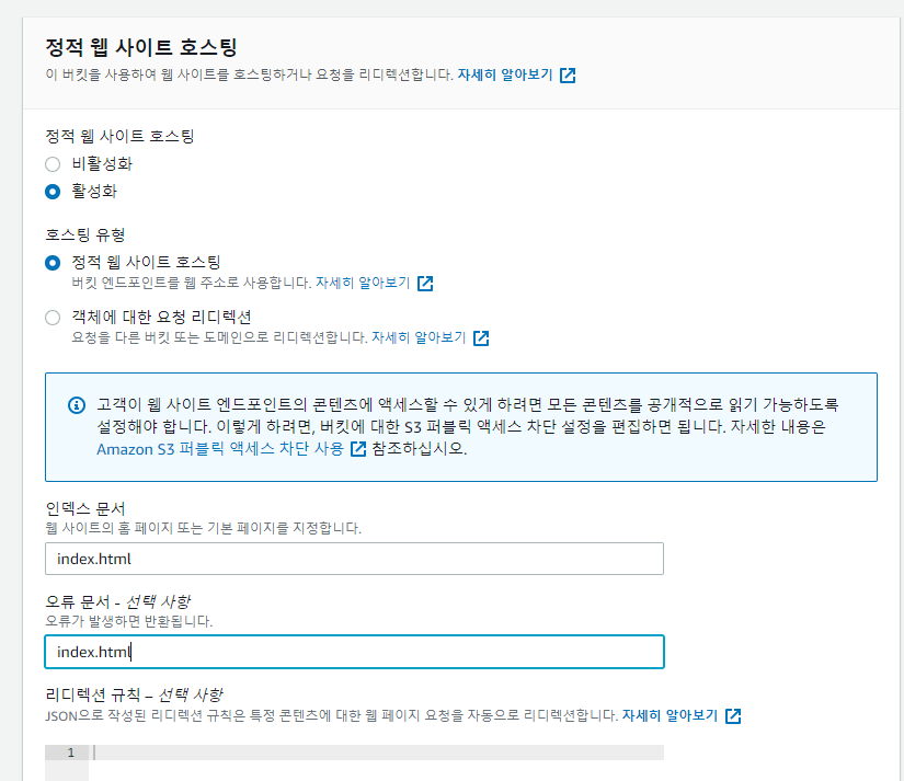 2-2. 속성 – 정적 웹사이트 호스팅