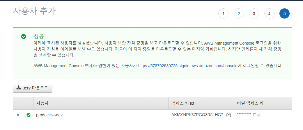 아까 IAM 에서 추가한 사용자 이름을 통해서 CLI에 유저를 추가해줍니다.
