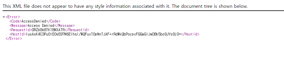 그리고 이제 바로 cloudfront 에서 준 배포사이트를 들어가면 오류가 납니다.