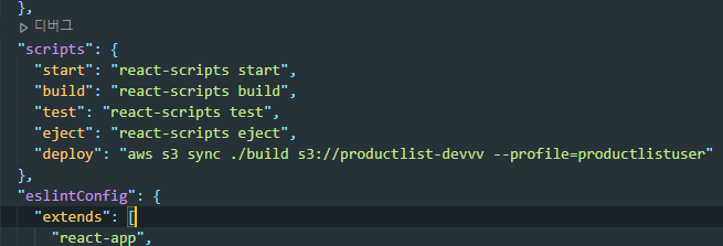 aws s3 sync ./build s3://[S3 버킷 이름] --profile=[사용자 아이디] productlistuser