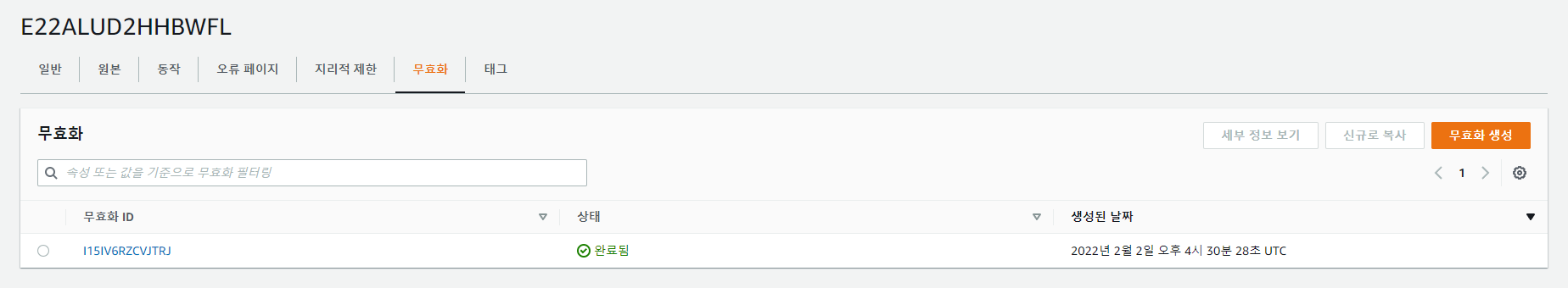 distribution-id 는 CloudFront 페이지에서 ID 값을 입력