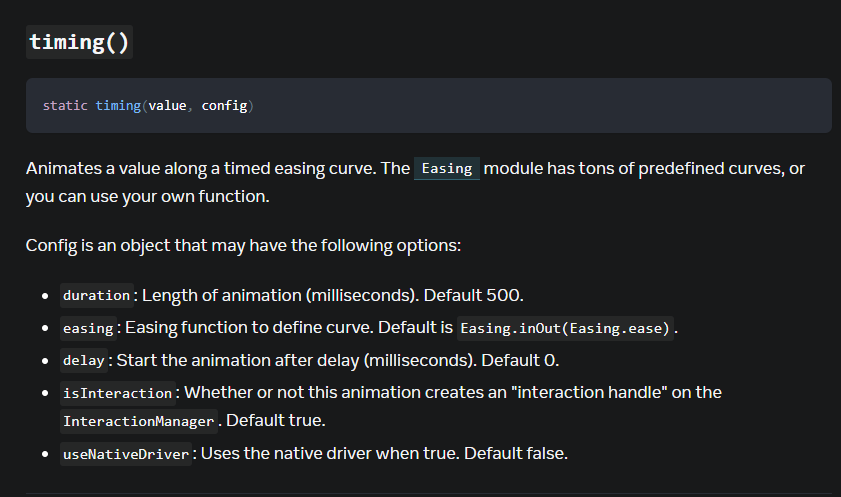 useNativeDriver: ( 휴대폰 네이티브 방식(안드로이드, ios)으로 애니메이션을 움직일 것인지) true