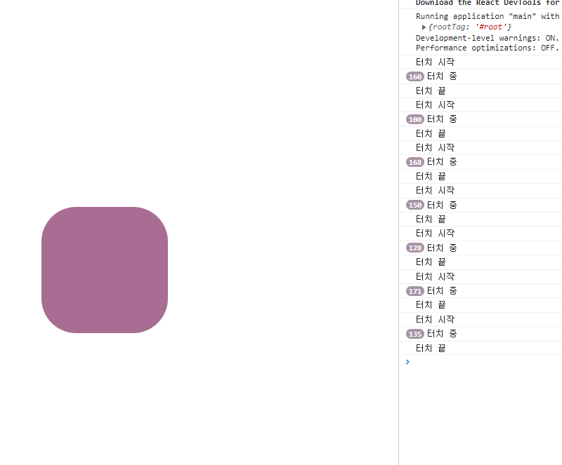 }, 이것은 사용자가 터치를 하고 어디로 위치하는지 x, y 값을 주어주는 함수입니다.