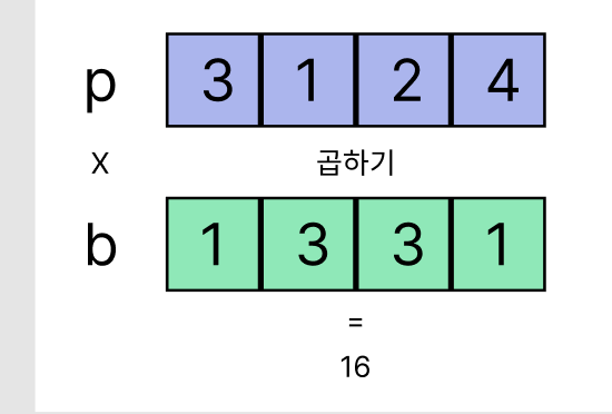 2. 따라서 순열을 구하고 b에 있는 배열과 곱하여서 원하는 숫자와 같다면 정답인 순열으로 하였습니다