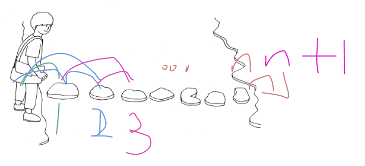 철수는 학교에 가는데 개울을 만났습니다. 개울은 N개의 돌로 다리를 만들어 놓았습니다. 철 수는 돌 다리를 건널 때 한 번에 한 칸 또는 두 칸씩 건너뛰면서 돌다리를 건널 수 있습니다. 철수가 개울을 건너는 방법은 몇 가지일까요?
