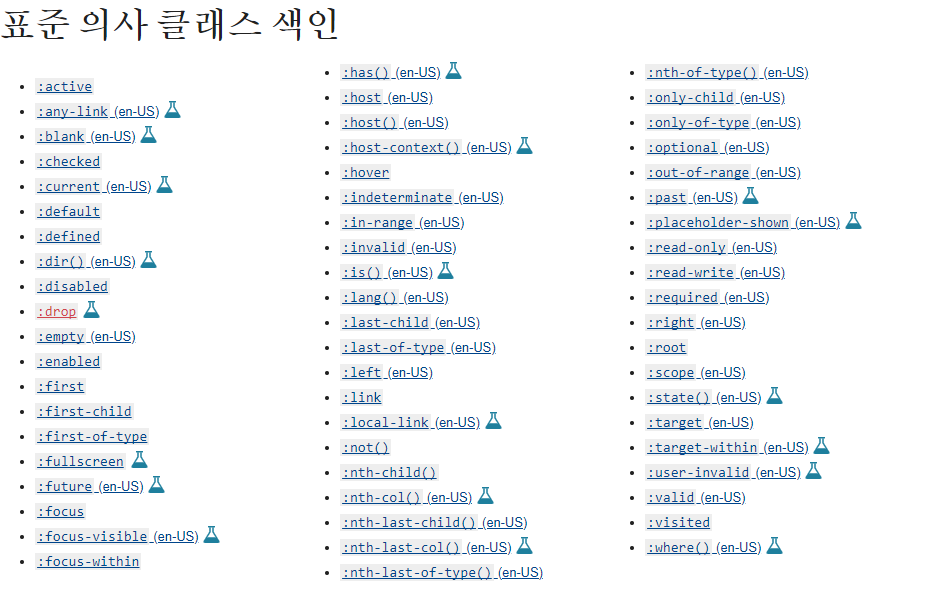https://developer.mozilla.org/ko/docs/Web/CSS/Pseudo-classes