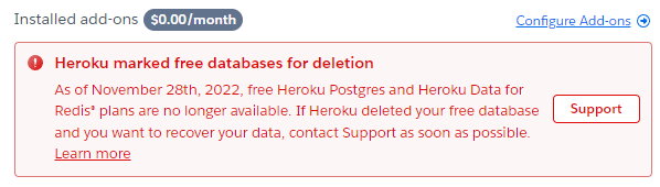 YG - 96년생 , 강아지 있음, 개발자 희망 2022. 12. 30. 17:34각종 토이프로젝트와 원티드 프리온보딩을 하며 json-server을 이용해서 개발하였는데 이때 사용된 히로쿠 웹서버가 freetier을 지원하지 않게됨으로써 이사를 해야했다.