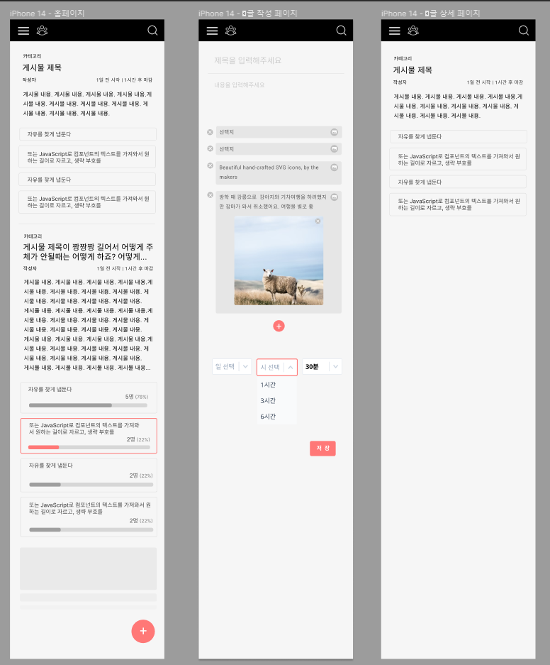 피그마를 한 페이지씩 나누어 디자인하기보다 컴포넌트 단위로 쪼개어 디자인 거리를 나누거나, 공용 컴포넌트 위주로 디자인하고 함께 페이지를 컴포넌트를 조합해 가며 디자인을 해가는 것이 좋다고 생각되었습니다.