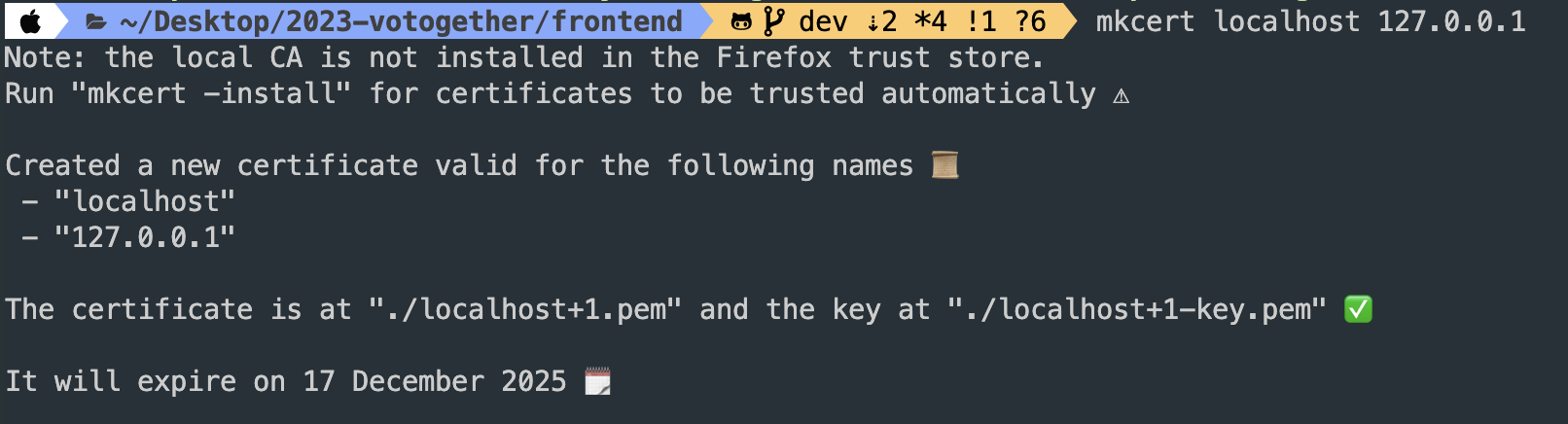 mkcert localhost 127.0.0.1