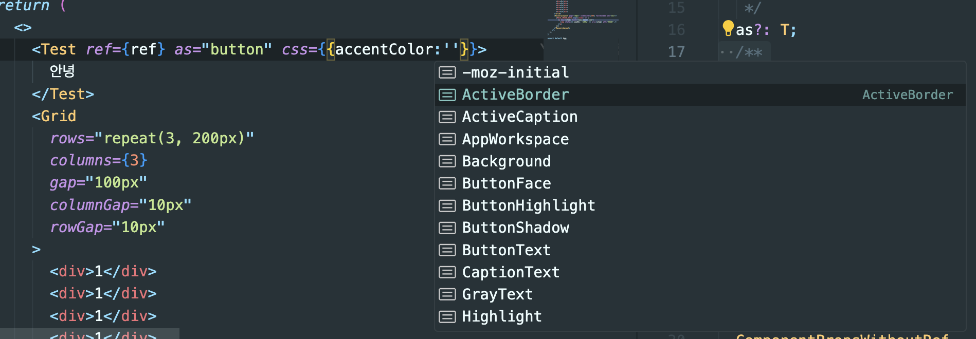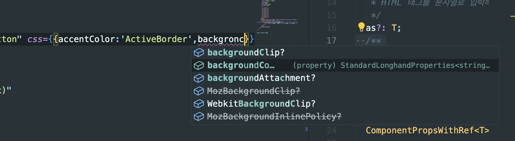 CSSProperties 타입을 이용해서 인라인 CSS 속성을 자동 완성 되도록 할 수 있습니다.