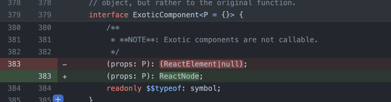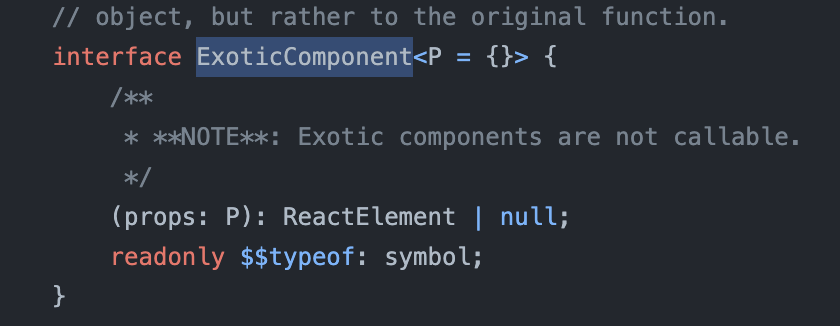 문제가 되는 타입리엑트 17 버전의 ExoticComponent의 타입은 ReactElement | null로 되어있습니다.