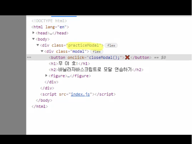 const closeModal = document.querySelector(".practiceModal"); // 모달창(무야호창)을 closeModal로 지정해줍니다//
