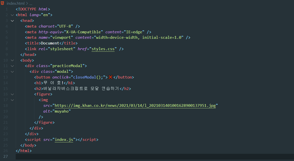 - 자바스크립트에 closeModal이라는 함수를 만들어줍니다