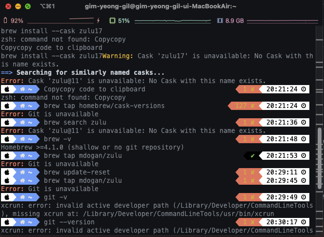 Mac 업그레이드 후 xcrun: error: invalid active developer path 에러 해결하기