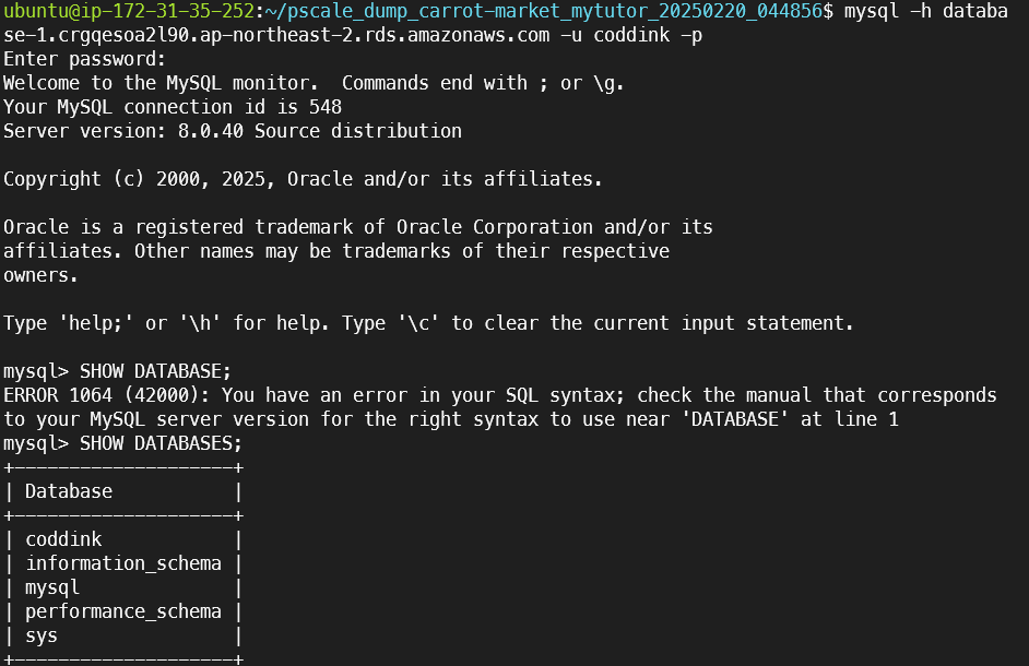 mysql -h database-1.crgqesoa2l90.ap-northeast-2.rds.amazonaws.com -u coddink -p coddink < combined_backup.sql