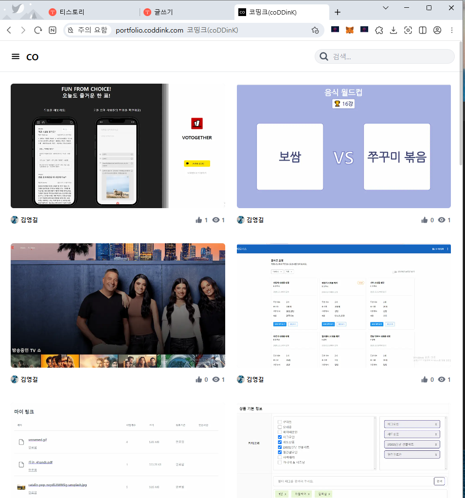 예전에 진행했던 포트폴리오 사이트 프로젝트를 이어가려 하는데, 오랜만에 'coDDink' 프로젝트를 다시 살펴봤습니다.