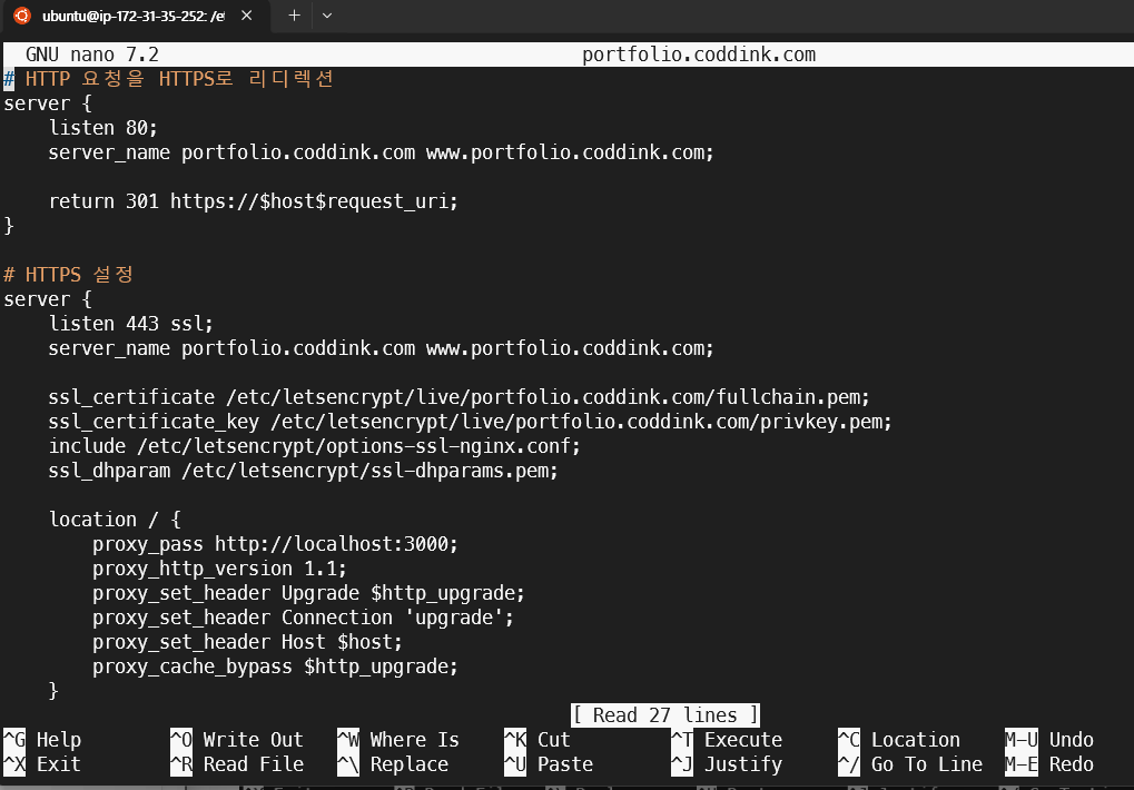 ssl_certificate_key /etc/letsencrypt/live/portfolio.coddink.com/privkey.pem;
