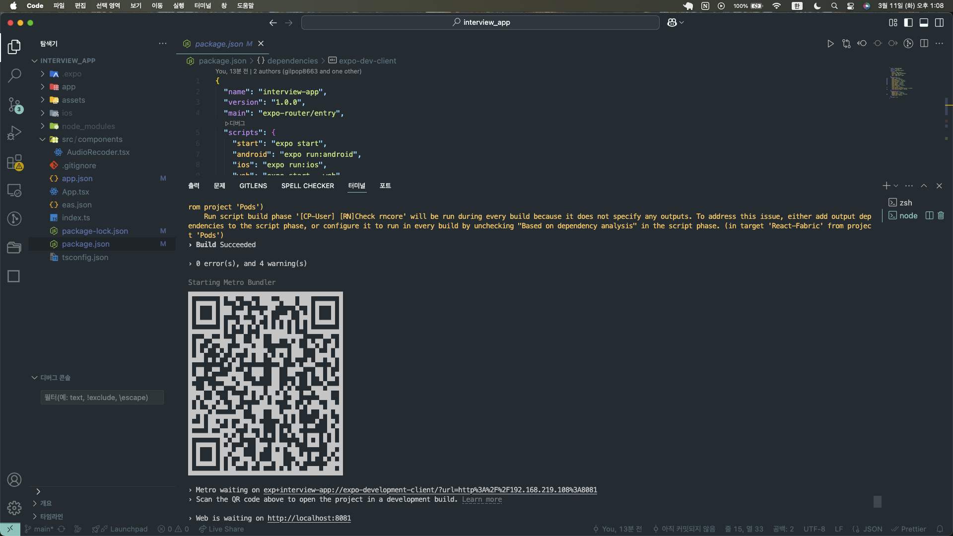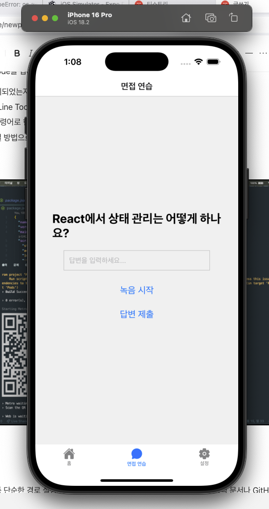 - Expo 프로젝트 재실행 (npx expo start -c --ios)