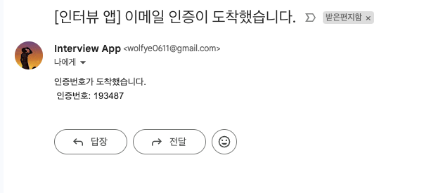 - 사용자가 이메일에서 인증코드 확인 후 입력