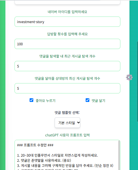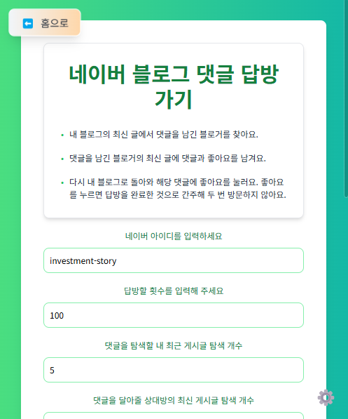 - 댓글을 남긴 블로거의 최신 글에 댓글과 좋아요를 자동으로 남깁니다