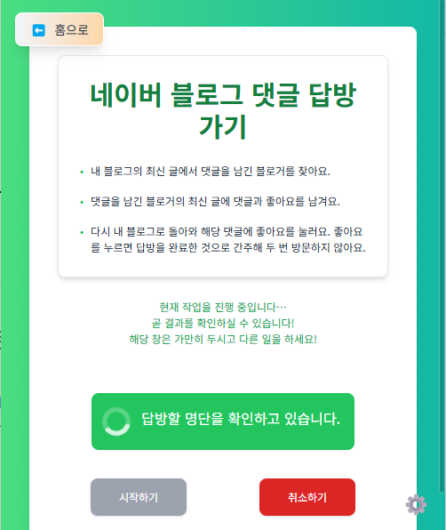 💡 정기적 실행: 하루 1~2회 정도 실행하면 모든 댓글에 빠르게 답방할 수 있어요