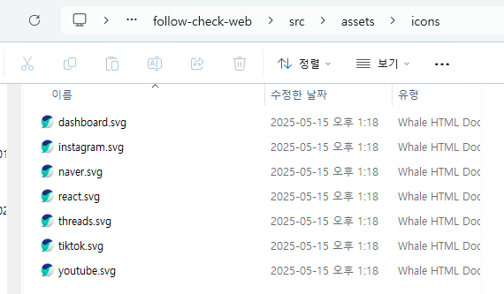 - 유지보수: 아이콘을 추가하거나 수정할 때 개별 파일만 관리하면 됩니다