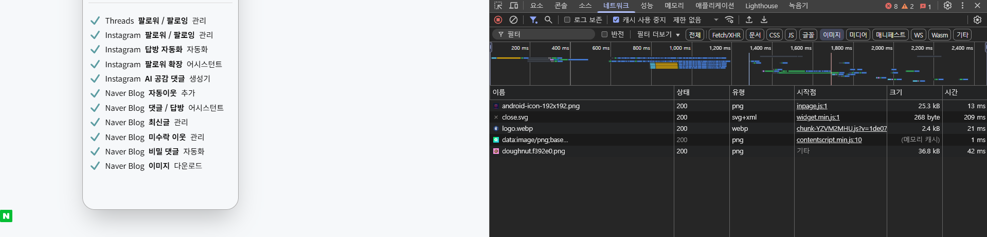 SNS 로그인 기능을 개발하면서 다양한 서비스의 로고들을 한 페이지에서 불러와야 했습니다. 네이버, 인스타, 틱톡, 페이스북 등 약 10개의 로고를 효율적으로 처리해야 했죠. 처음 고민했던 것은 무엇보다 '네트워크 요청 수를 줄이는 것'이었습니다.