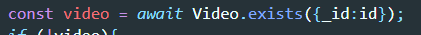 예를 들어 비디오.exists({_id : id })를 하였는데 비디오의 id 가 현재 URL의 id와 같은지 true,false를 체크하는 기능으로 사용할 수 있다