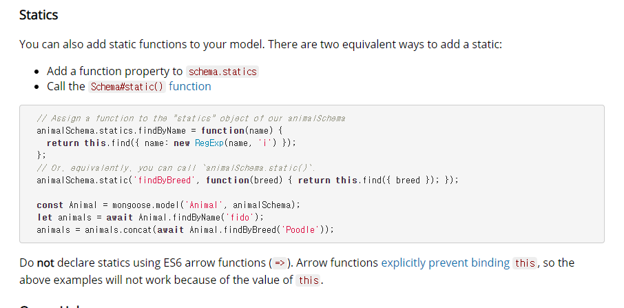 https://mongoosejs.com/docs/guide.html#statics