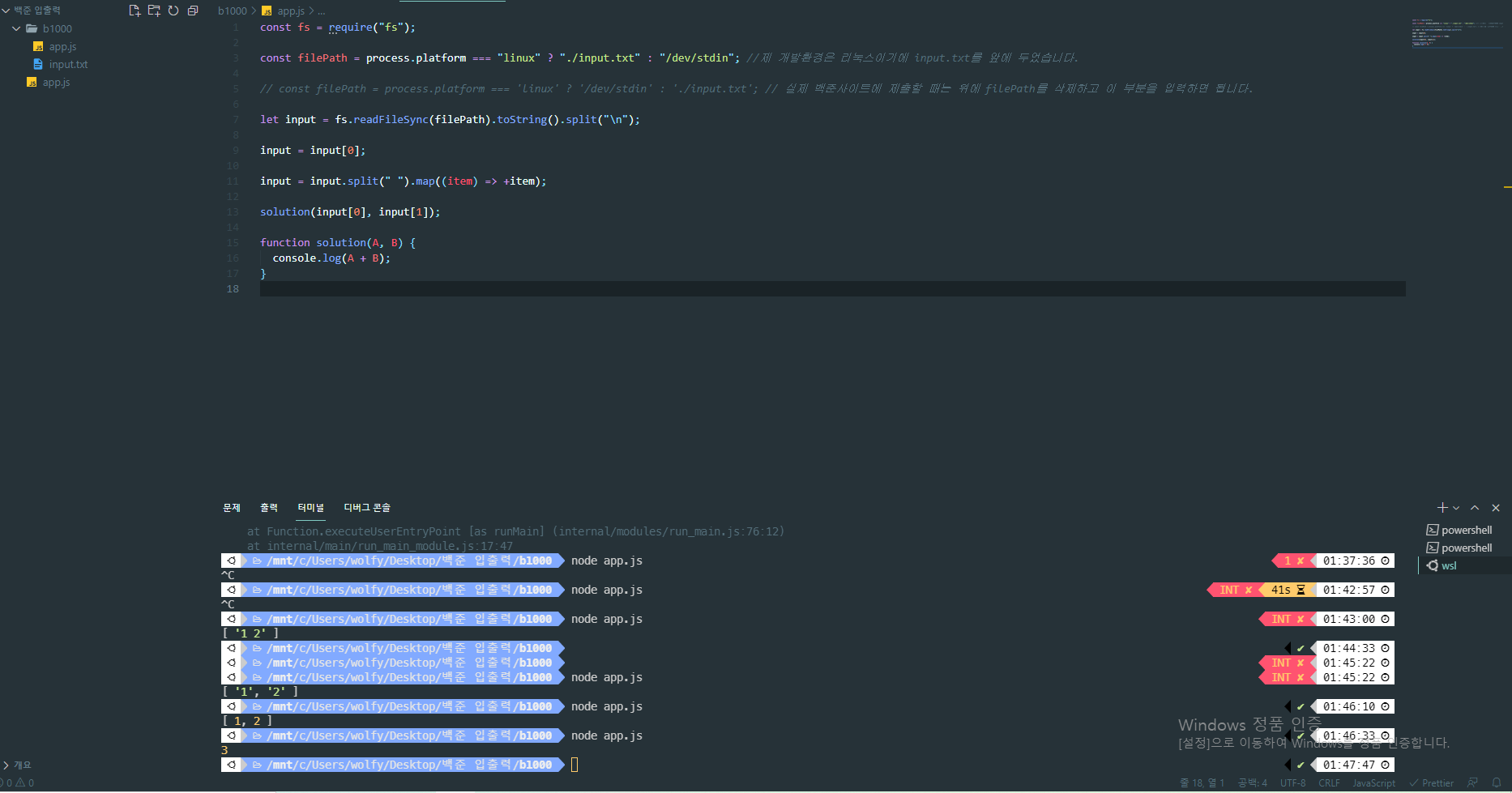 const filePath = process.platform === "linux" ? "./input.txt" : "/dev/stdin"; //제 개발환경은 리눅스이기에 input.txt를 앞에 두었습니다.