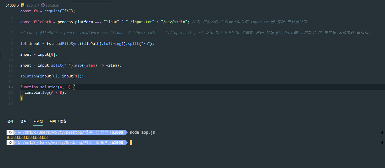 const filePath = process.platform === "linux" ? "./input.txt" : "/dev/stdin"; //제 개발환경은 리눅스이기에 input.txt를 앞에 두었습니다.