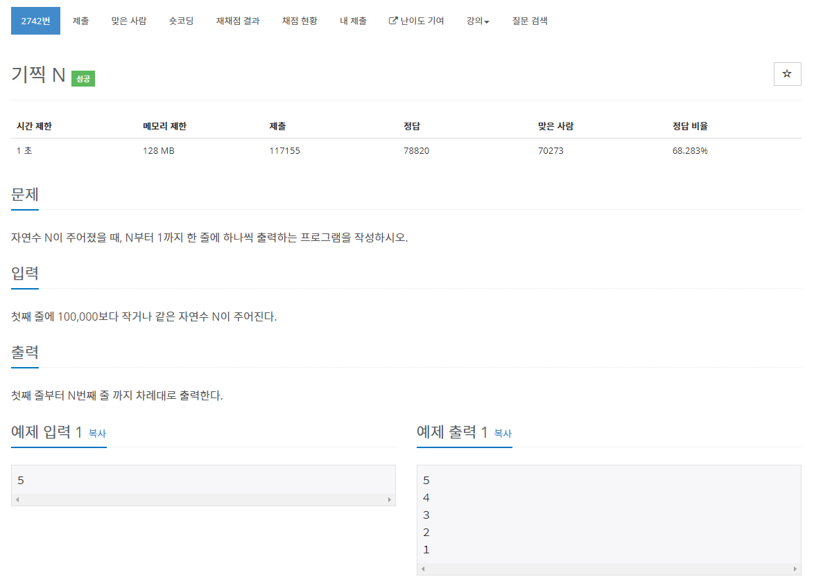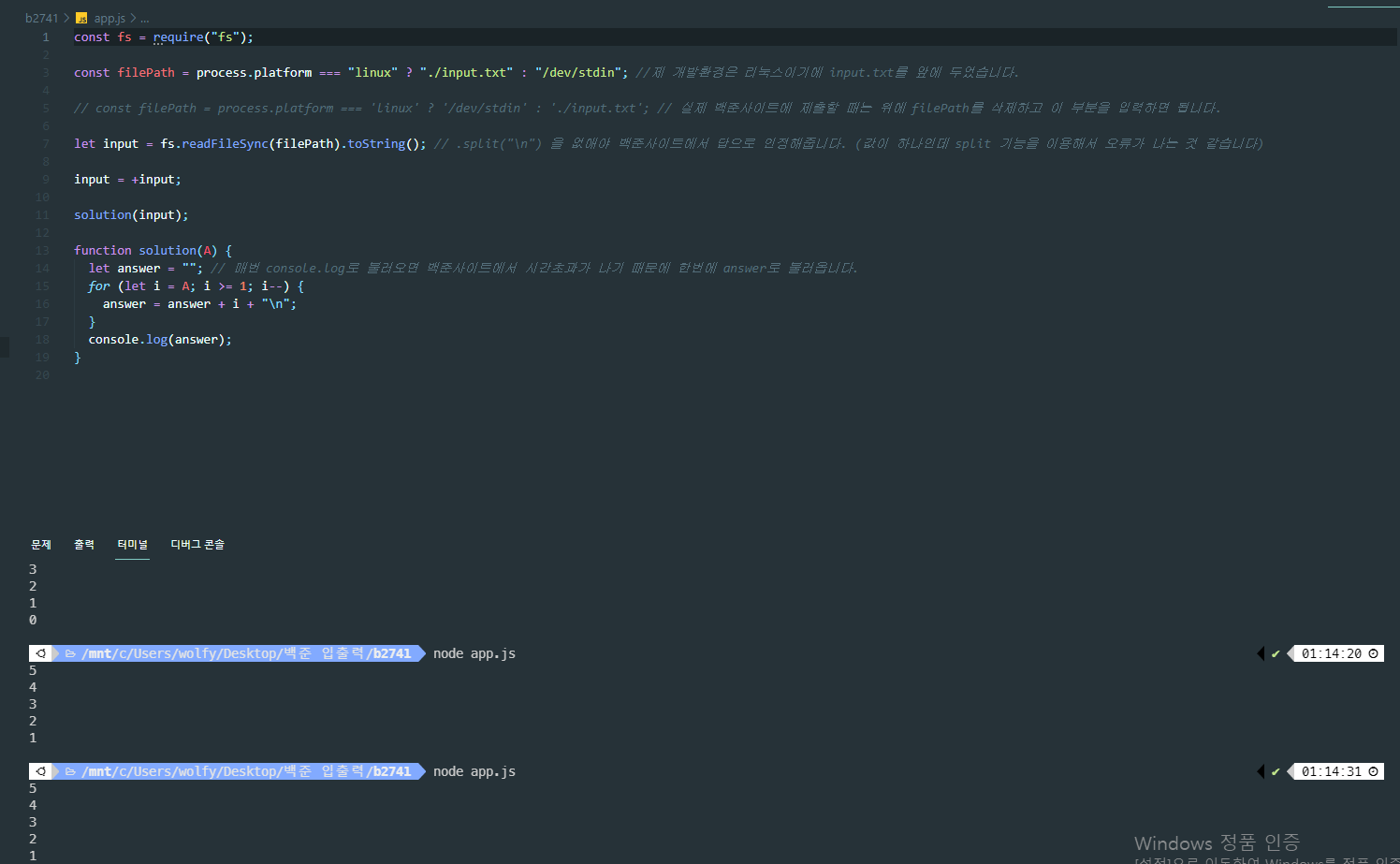 | 백준 nodejs 2741번: N 찍기 (0) | 2021.08.20 |
