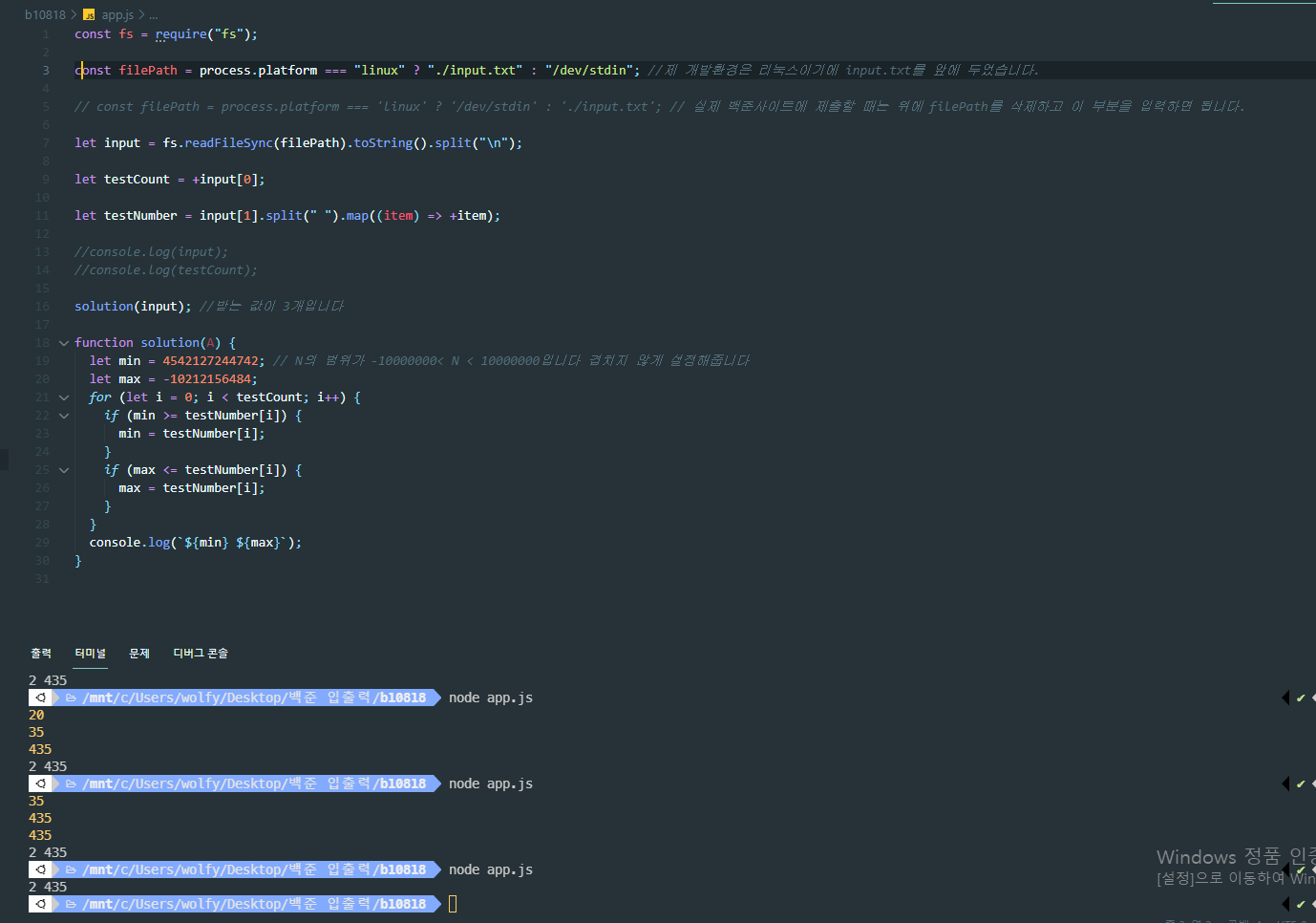 const filePath = process.platform === "linux" ? "./input.txt" : "/dev/stdin"; //제 개발환경은 리눅스이기에 input.txt를 앞에 두었습니다.