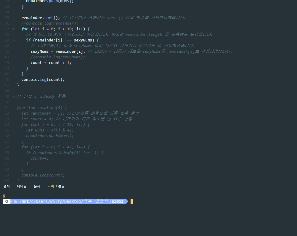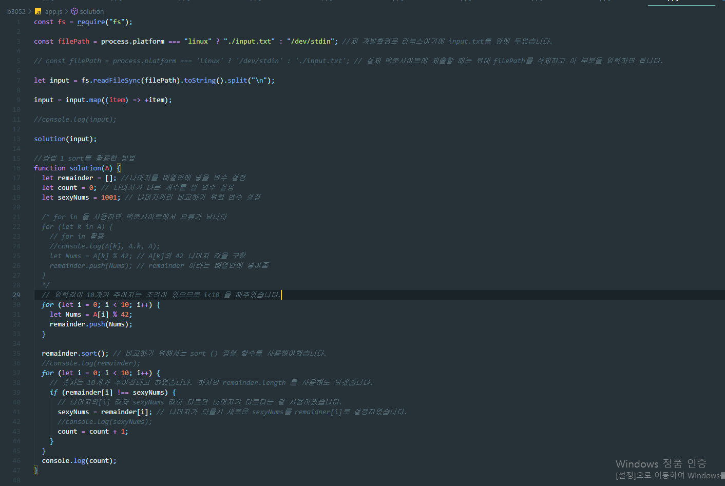 let Nums = A[k] % 42; // A[k]의 42 나머지 값을 구함
