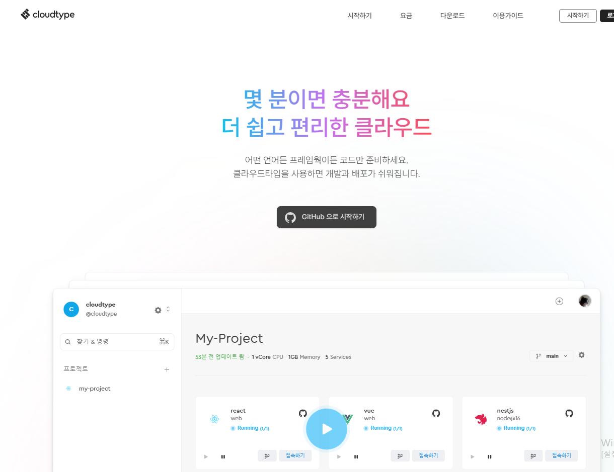 클라우드타입은 클라우드 기반 애플리케이션을 빠르게 개발하고 배포할 수 있는 클라우드 애플리케이션 플랫폼입니다.